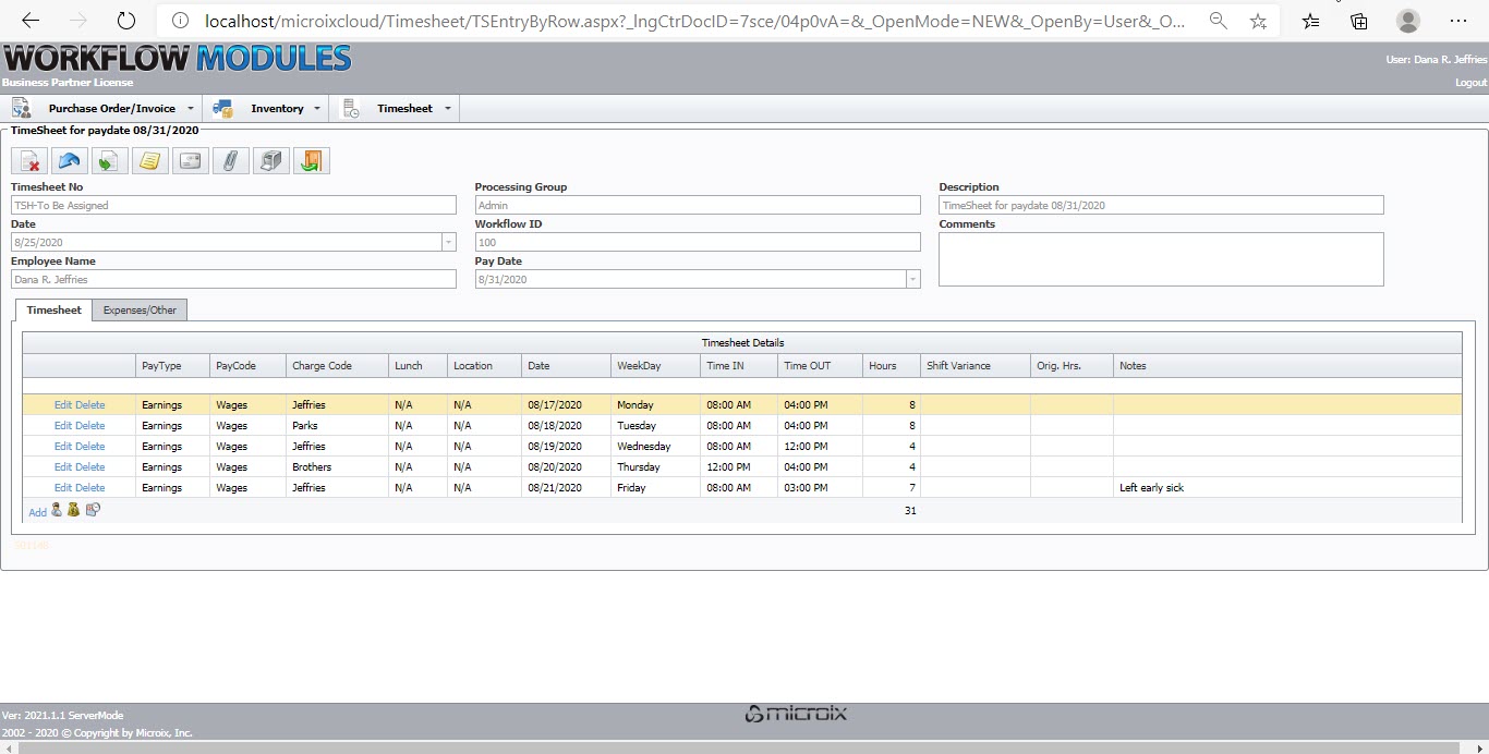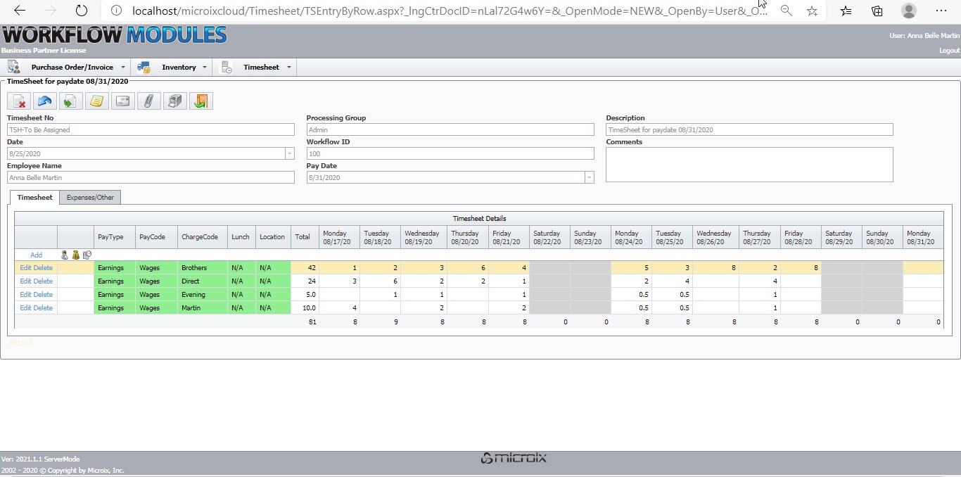 The Microix Timesheet Module enables each employee to record their timesheet data electronically and automatically to route them through a multi-level approval process.